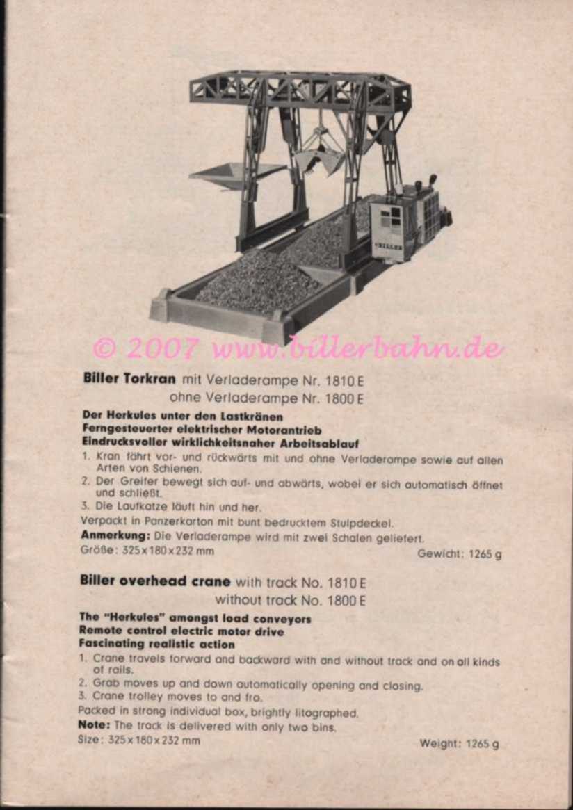 Hier jetzt im Prinzip der Torkran 1800 E - jedoch mit dem 2-teiligen Bunker aus Tiefziehplastik ausgeliefert und neu nummeriert. Interessant zu erwähnen, dass die Bilder der Anleitungen / Katalogabbildungen zu diesem Kran immer 3 Bunkerabteile zeigt - der ausgelieferte Bunker aber "nur" 2-teilig ist. Größe: genauso groß wie die anderen auch - glaube ich - Neuheit 1962 |