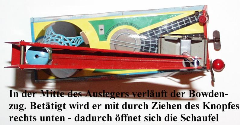 Knopf im linken Stellhebel konnte die Schaufel mittels eines