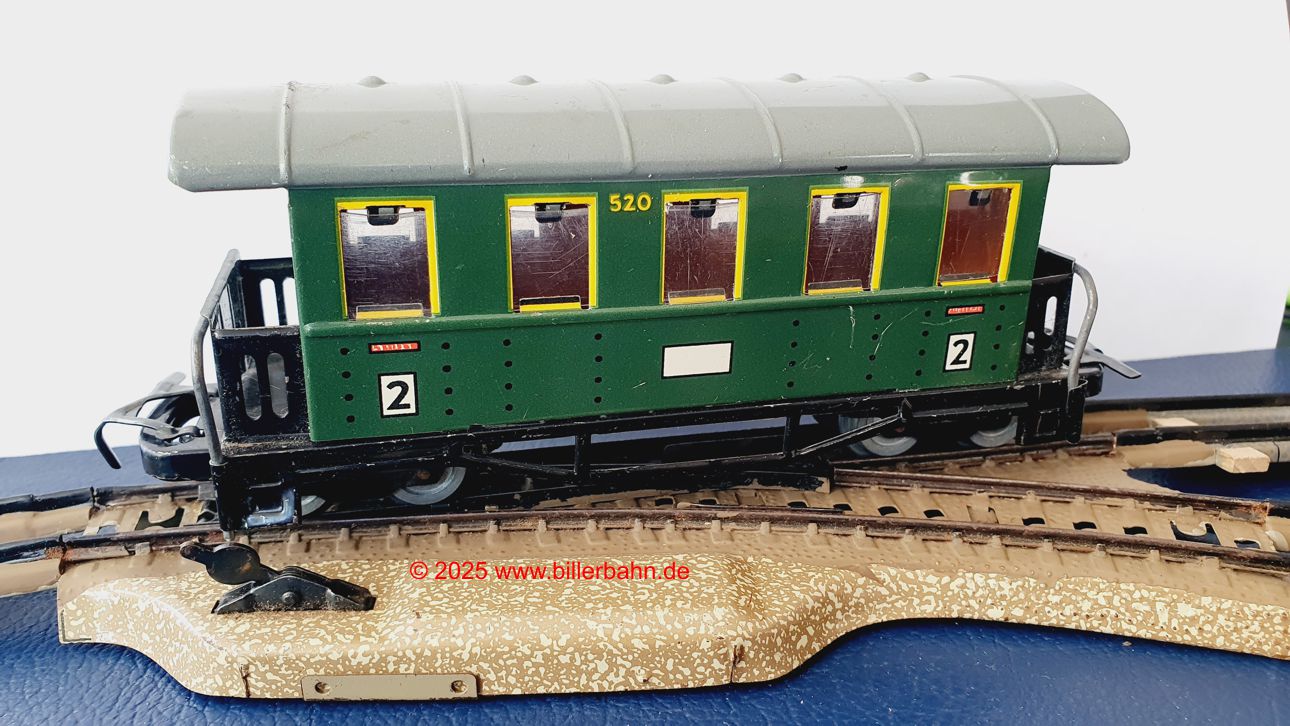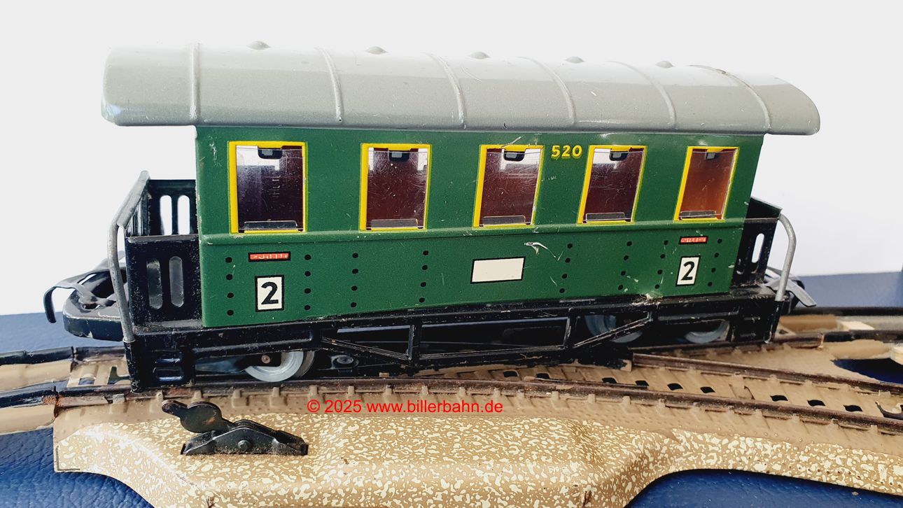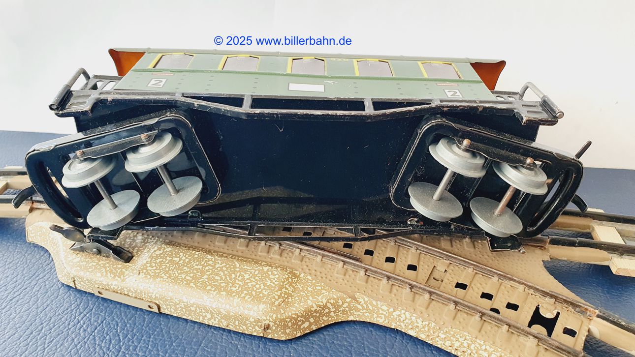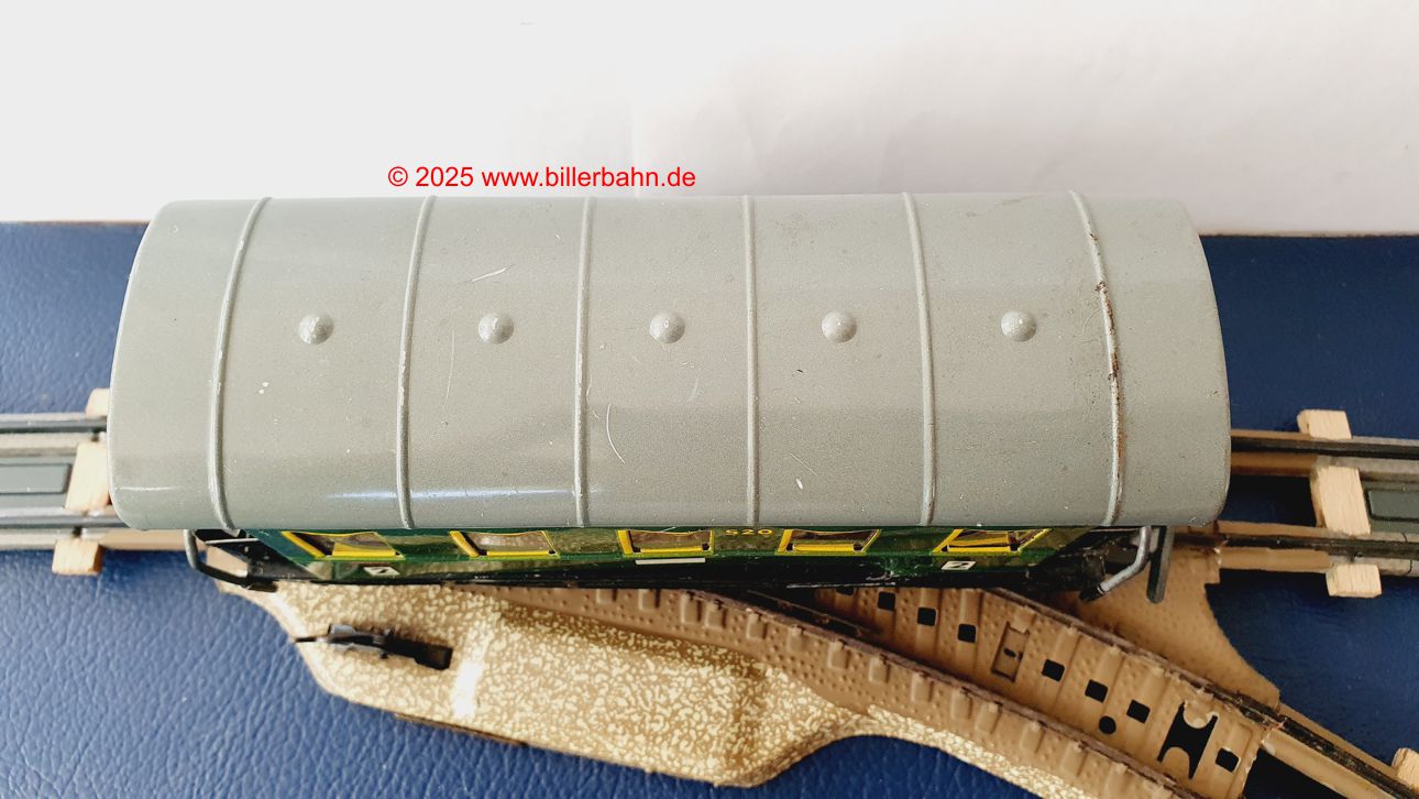 | 4. Version, Blech-Chassis mit Plastik-Drehgestellen, es fehlt eine Kupplung und ist nicht ersetzbar!, bespielter Zustand | |||