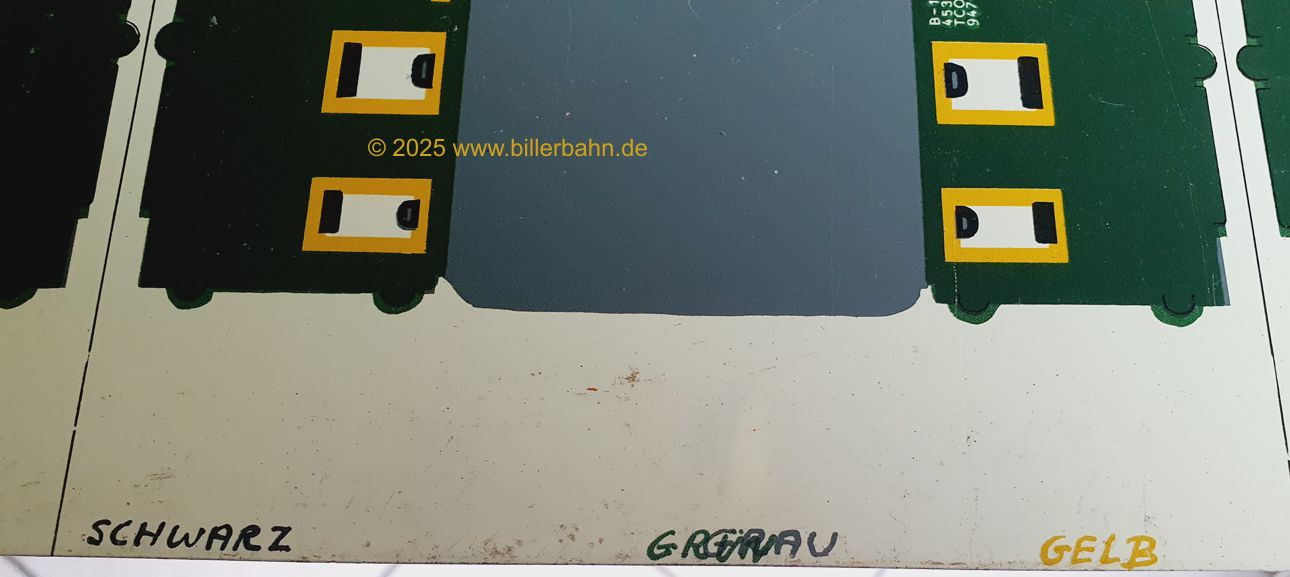 | die lithografierten Farben Schwarz, Grün, Grau und Gelb | Auftragsdatum 3.1.58 |