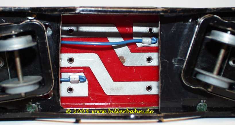 - der Packwagen von unten - zeigt das Batteriefach, wie es vom Tender 1502 bekannt ist - drei 1,5 Volt AA Batterien |