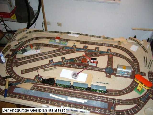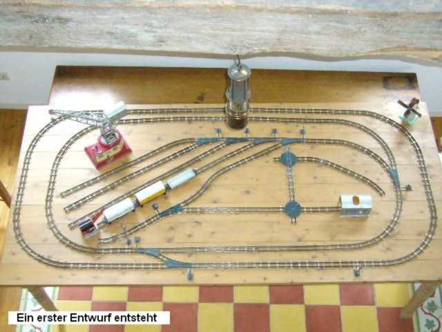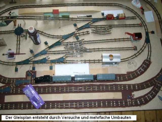 entwickelte ich einen Gleisplan, der es erlaubt, ständig mit zwei Zügen