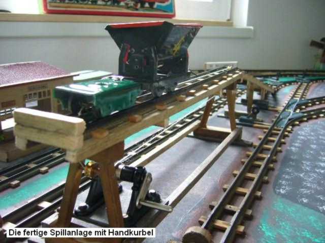 mittels einer Handkurbel mit Seilzug die Rampe herauf gezogen und oben