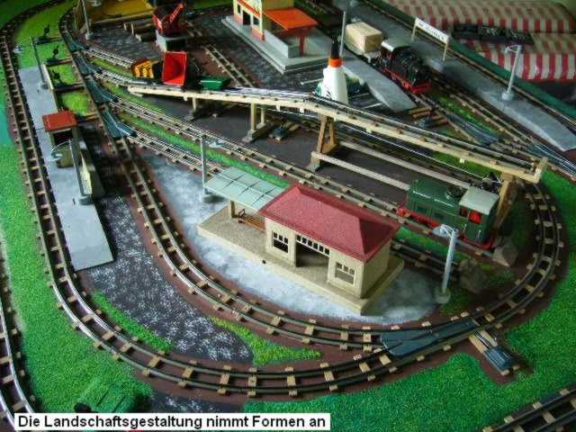 gemalt. Die Gleise befestigte ich mit kleinen Nägeln.