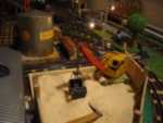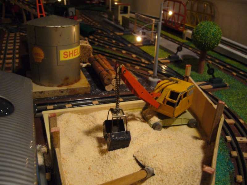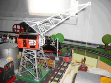 Unterbaustützen, Signale, Eisenbahnkran und den Bahnübergang in die