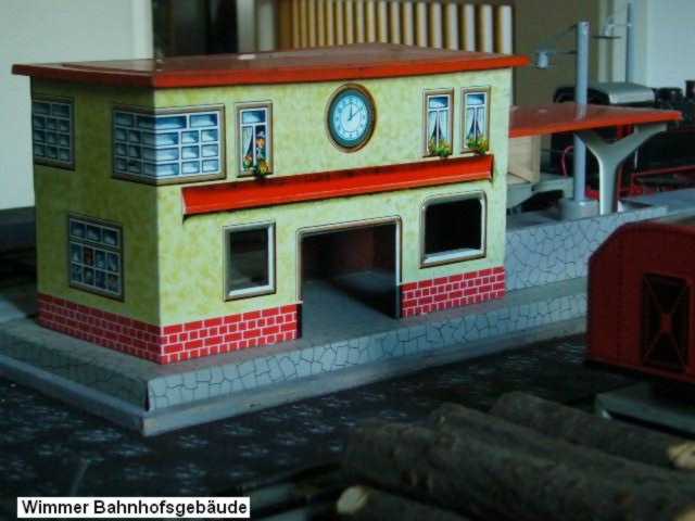 Blechgebäude der Firmen Wimmer, Kibri, Fleischmann und Märklin zum