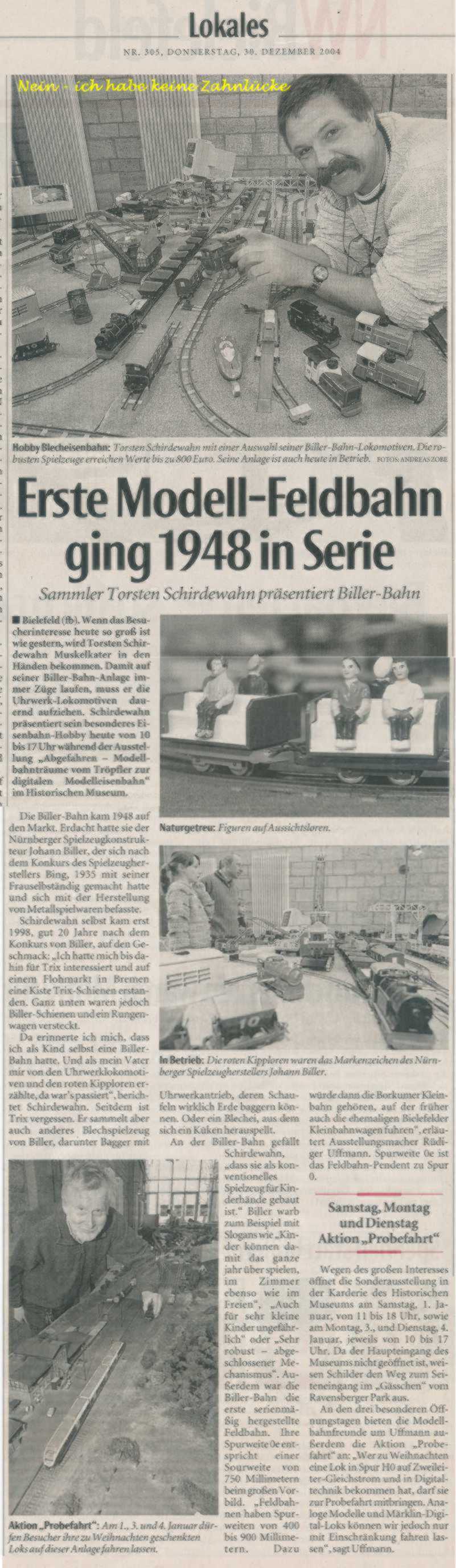 www.billerbahn.de im Rahmen der Ausstellung Abgefahren - Modellbahnträume vom "Tröpfler" zur digitalen Modelleisenbahn im Historischen Museum Bielefeld - 29. und 30.12. 2004