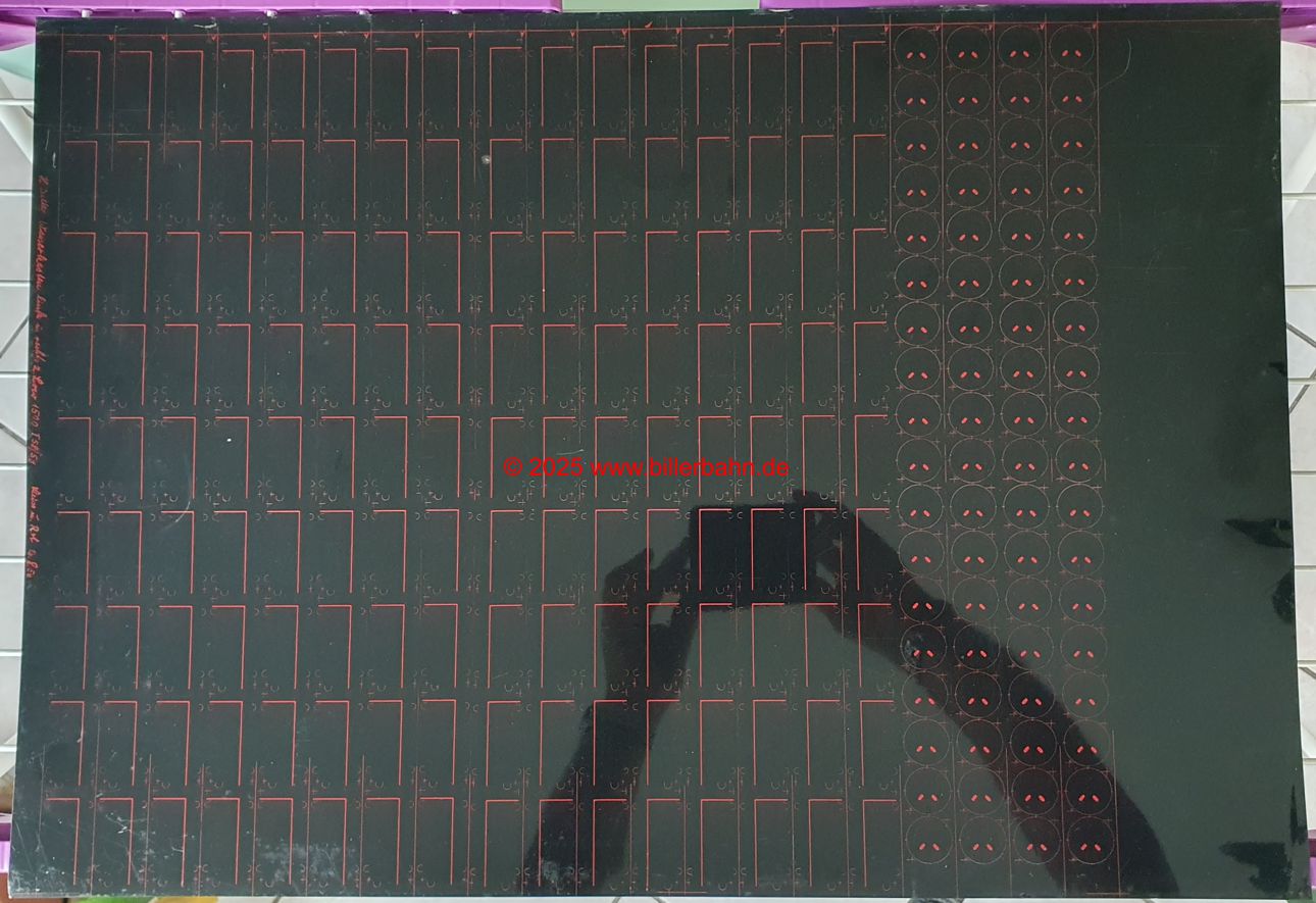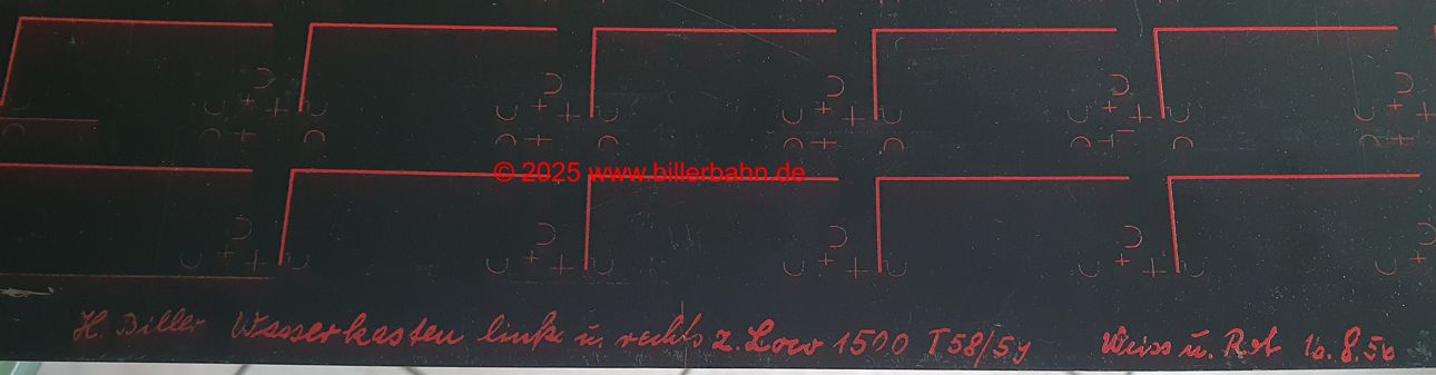 | Ungestanztes Blech für die schwarze 1500 / 1510 - 72 Paar Wasserkästen mit den "Halbkreisen" für die Laschen und 72 flache Oberteile zum Umschalter | Auftragsdatum 16.8.1958. Ist wohl ne überarbeitete Form da es die Lok schon ab 1956 gab! | ||