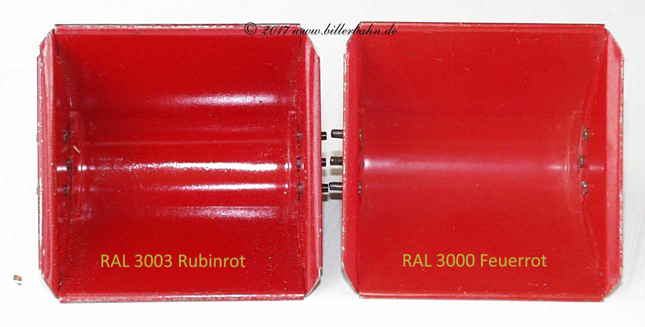 | left RAL 3003 Rubin red - right RAL 3000 Fire Red | left the "early" - right side the "late" Green |