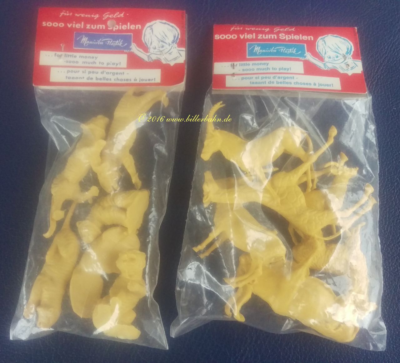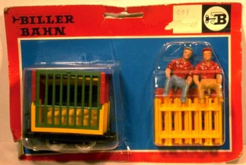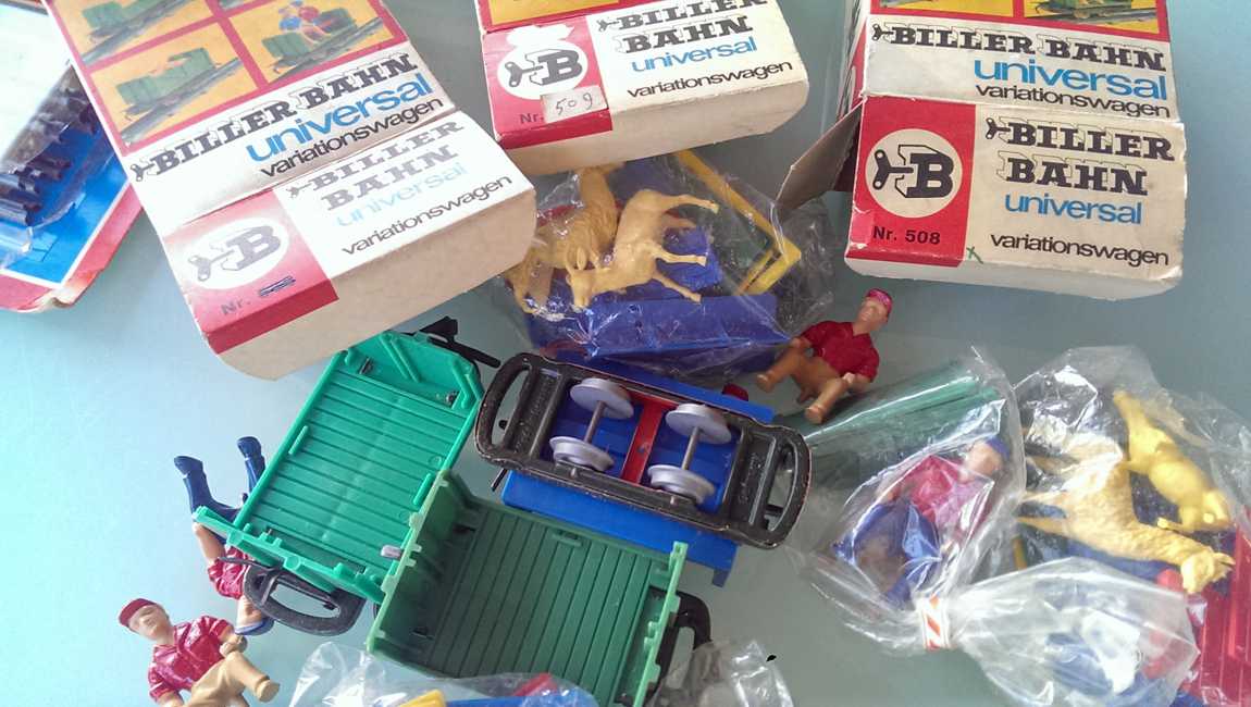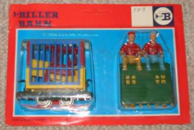 | Variationswagen in 1st available box - cardboard. The inscription is still 508, either pasted over or crossed out. Italian pricing of 1100 Lira. | My previous allegation, that the animals Biller distributed together with these sets as well as for the 238 / 1638 Sets were made by Heinerle, a German company famous for all kind of bits and pieces, is obsolete. These accesorries were obviously produced by Manurba - as these 2 bags with 6 animals each proof. | ||||||||||||||||||||||||||||||||||||||||||||||||||