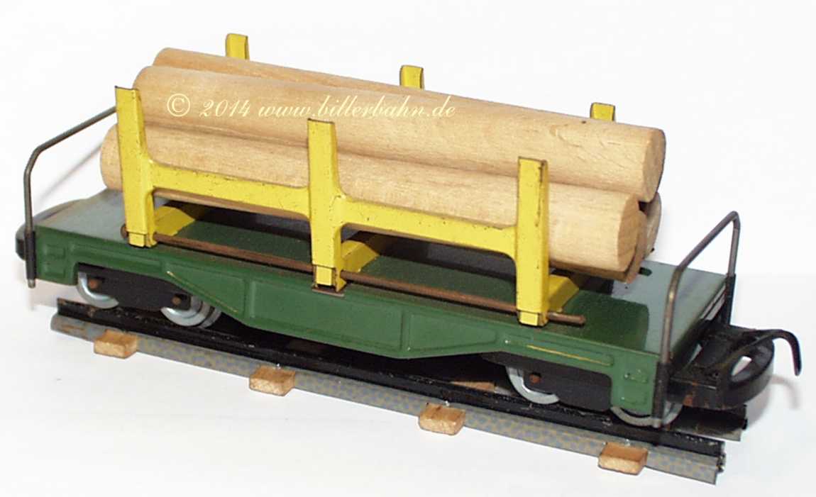 Log lorry, light green chassis, yellow