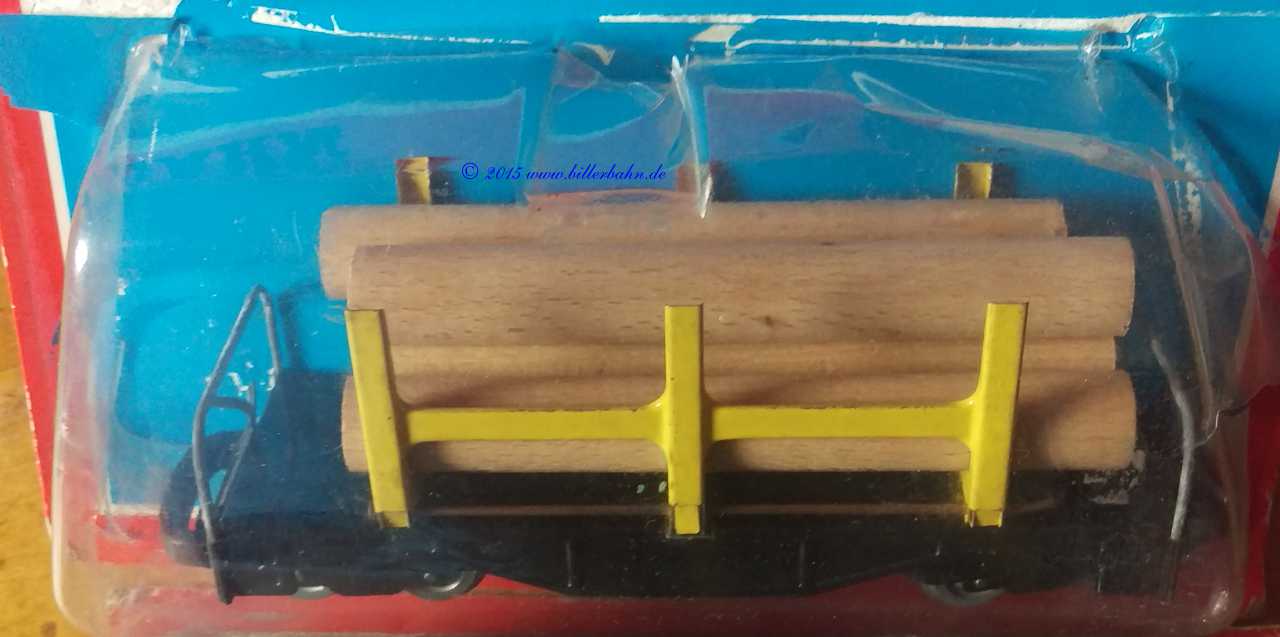 Black log lorry in damaged blister. Delivered with 5 woden