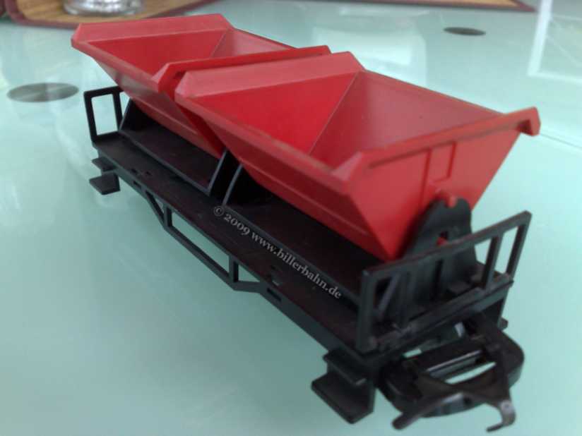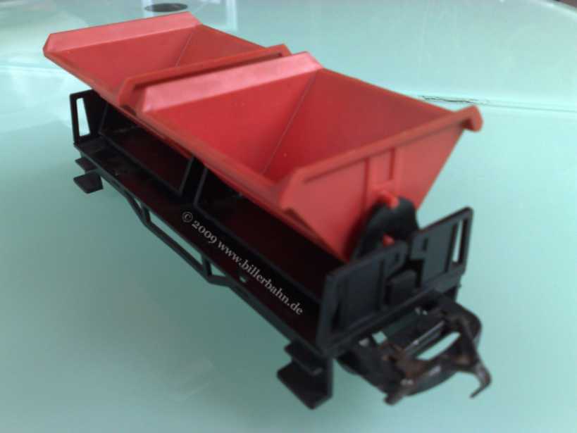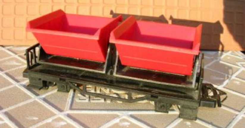double tipper - 2 red plastic tippers on a 4-axle plastic chassis. Only listed in price lists - never appeared in any catalogue.