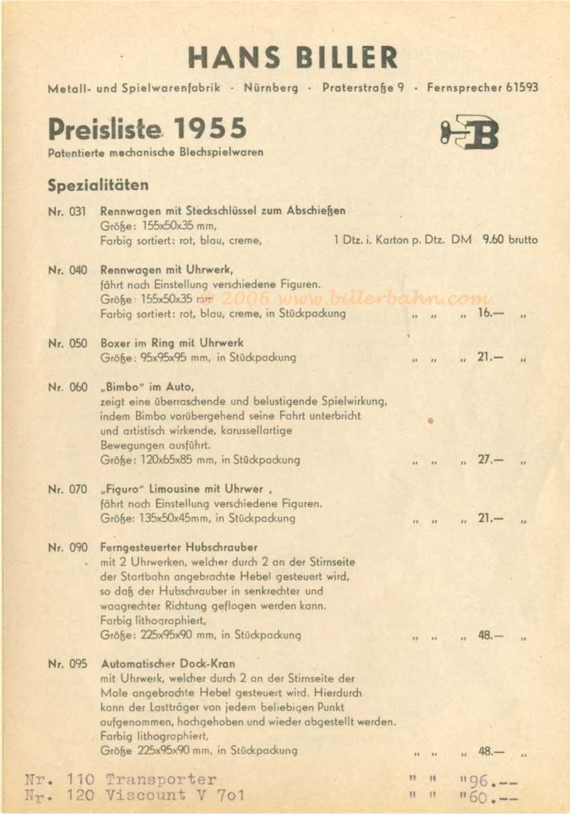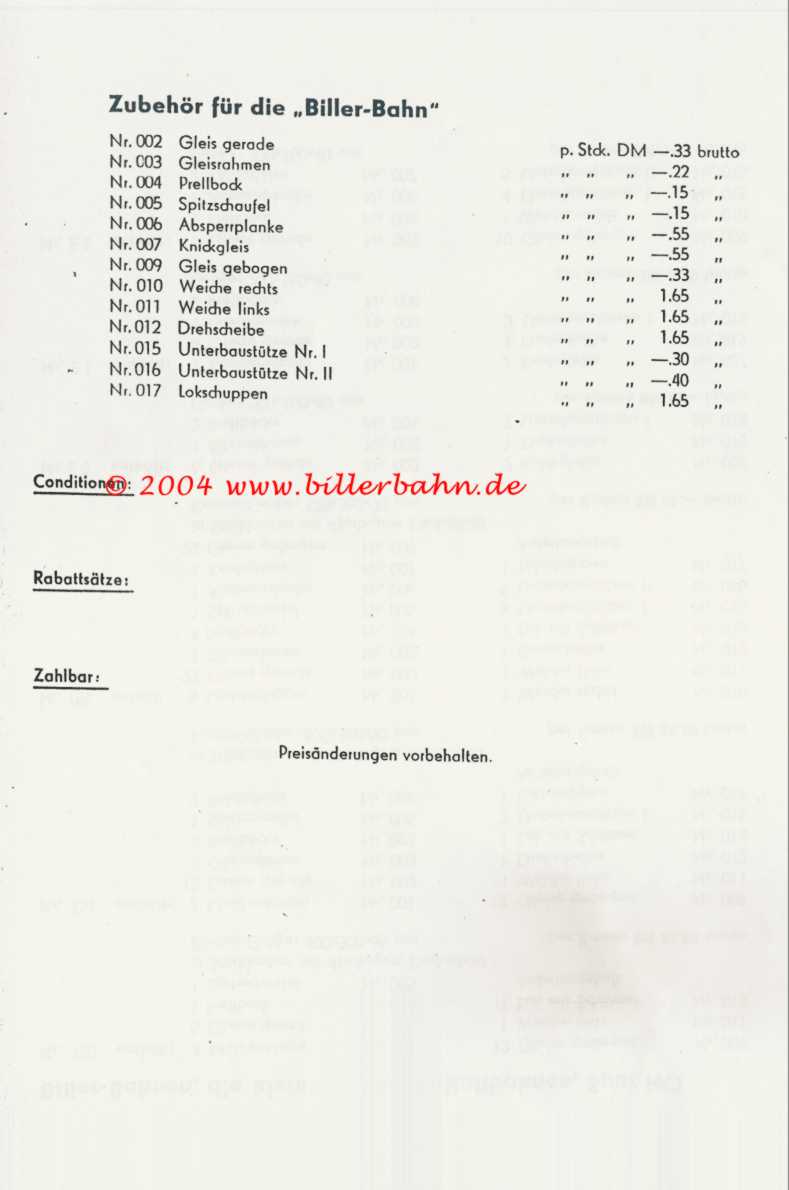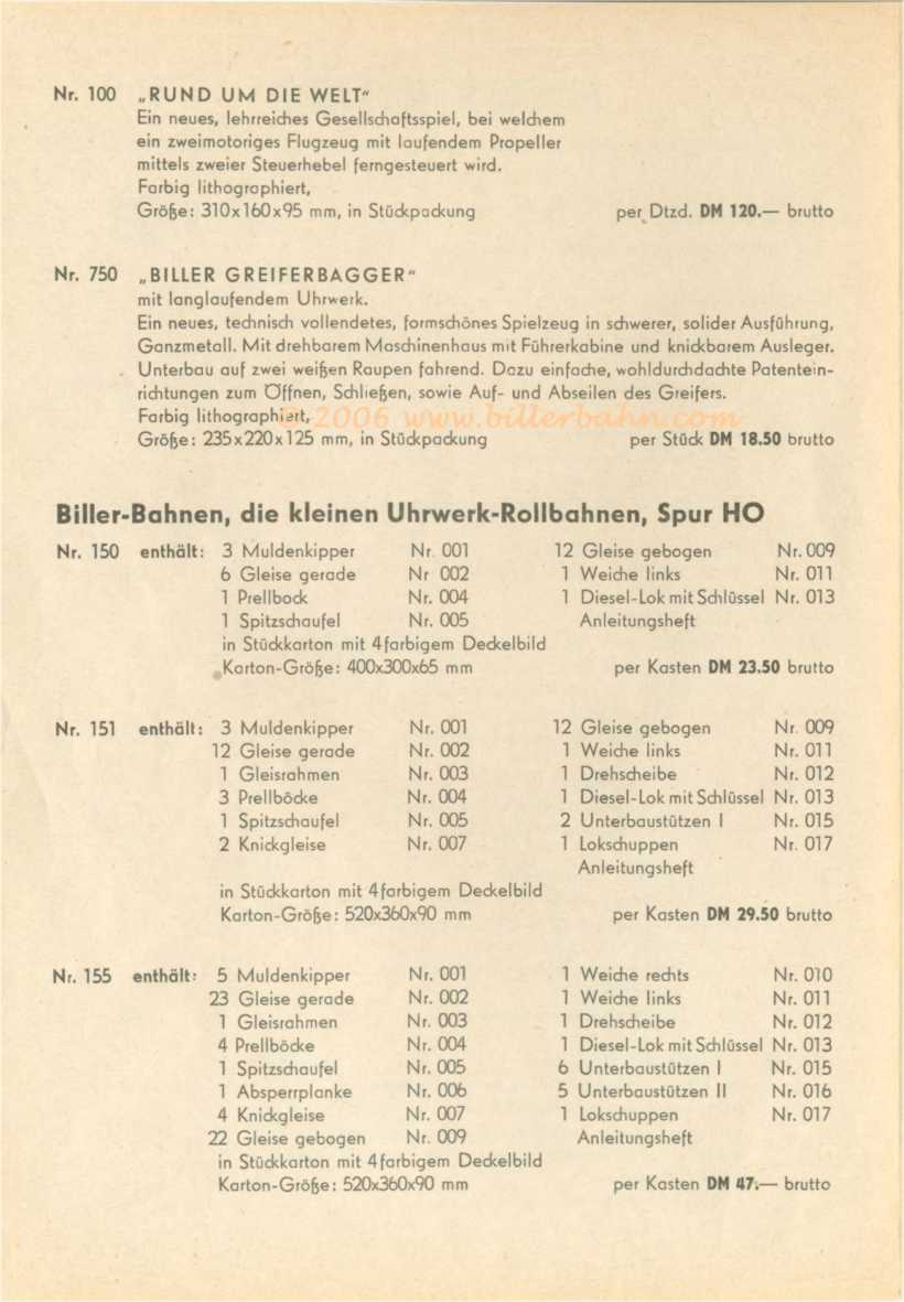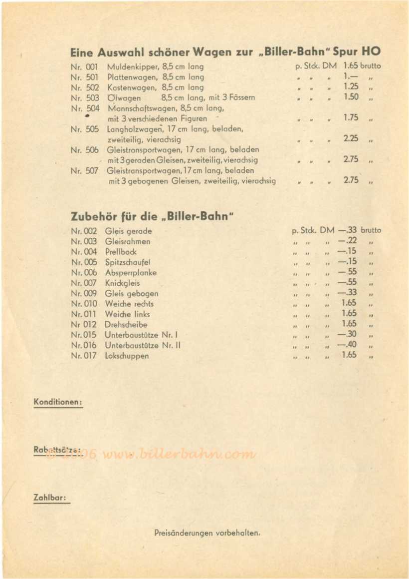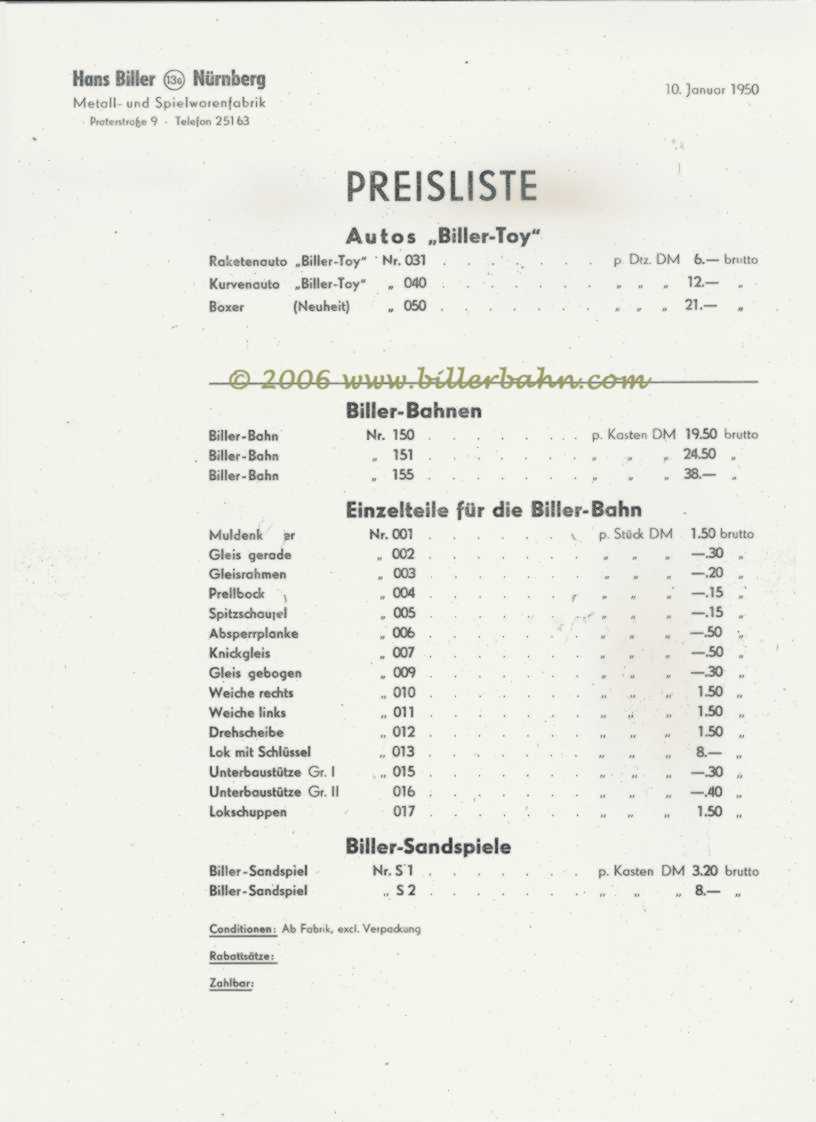 Price list of 1949/50 - Cars, Trains and "Sandspiele"