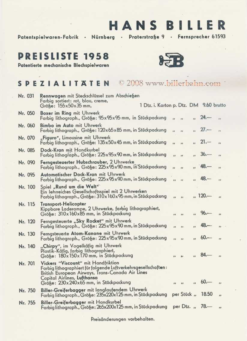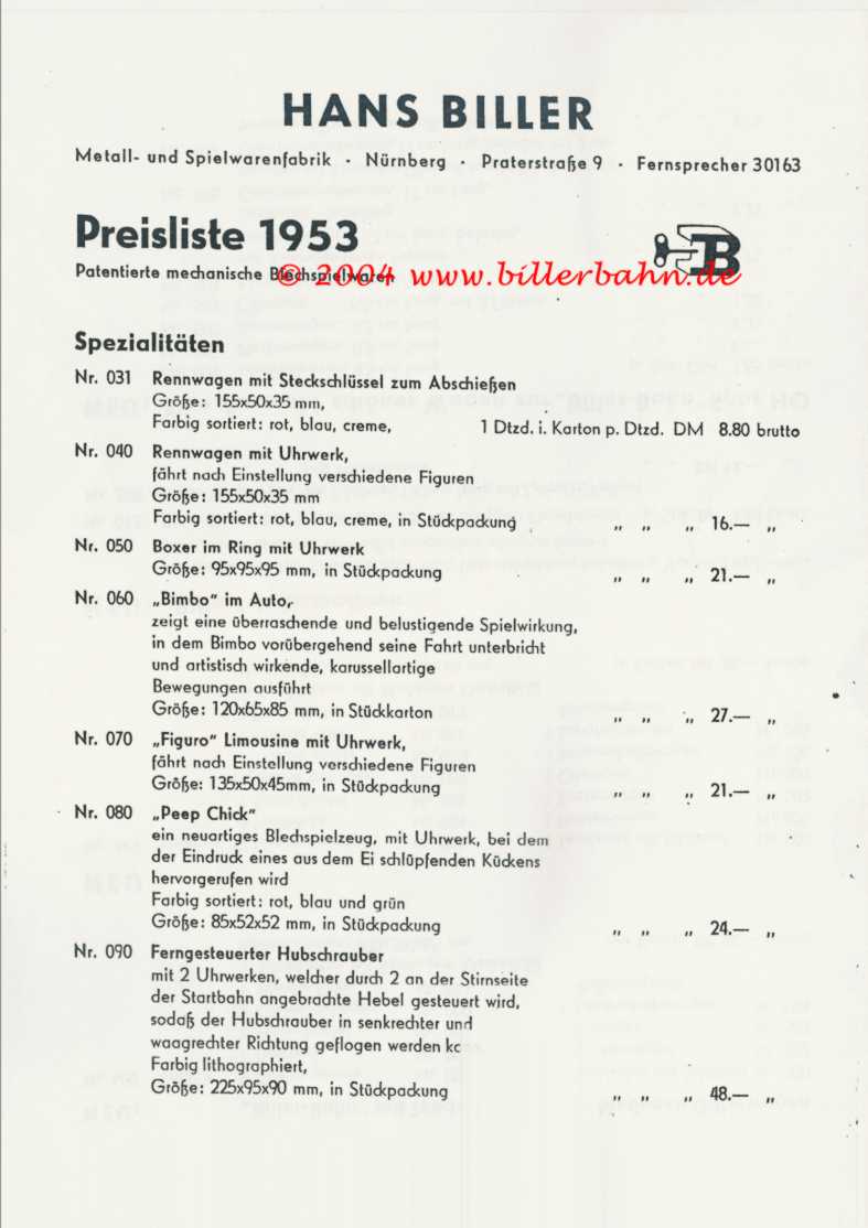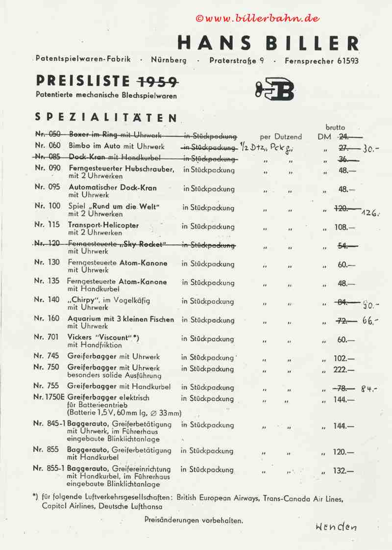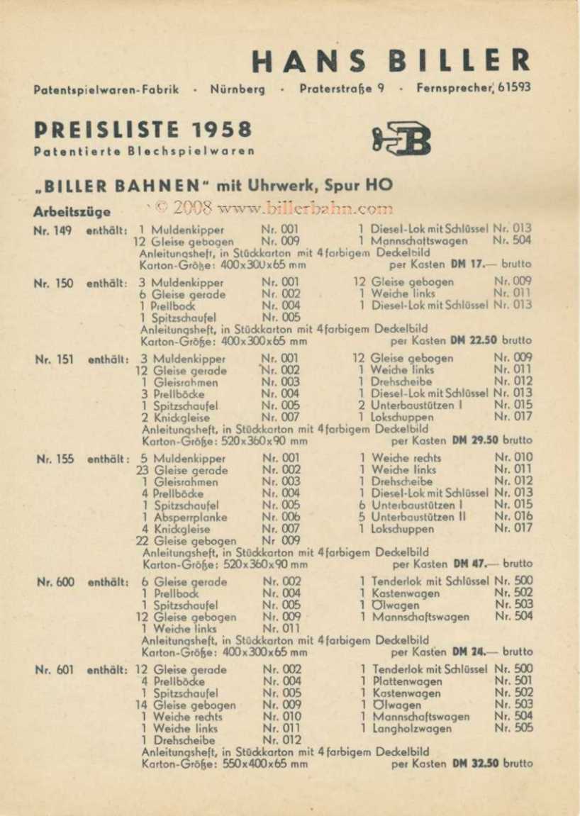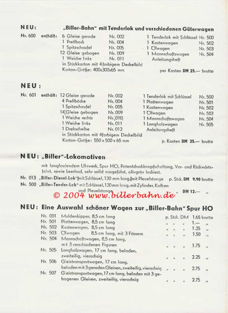 Price list of 1949/50 - Cars, Trains and "Sandspiele"