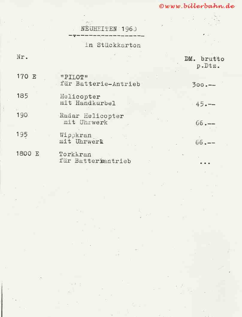 Page 1 shows (type-writer added) the 110 Helicopter (Novelty 1956) and