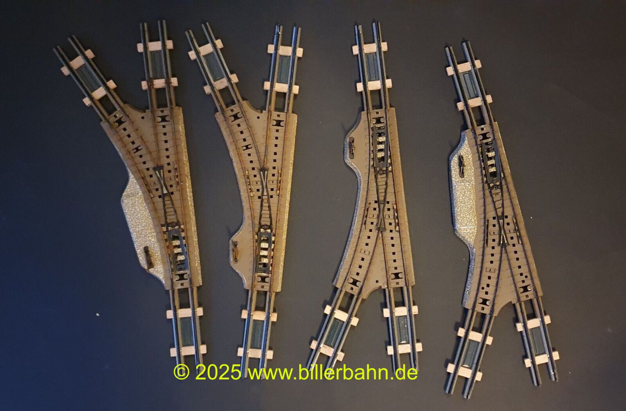 Conversions from Märklin hand switches and half straight Biller tracks |